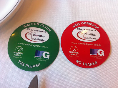 테이블에는 위와 같은 라벨이 있는데 녹색으로 해두면 웨이터가 고기를 가져다주고