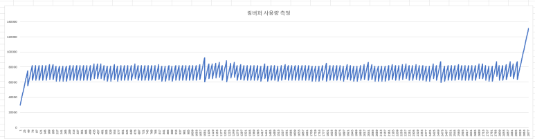 주기적으로 비슷한 크기의 데이터 축적 및 사용이 기록되다가 가끔씩 데이터 축적이 안되는 상황이 나타났다.