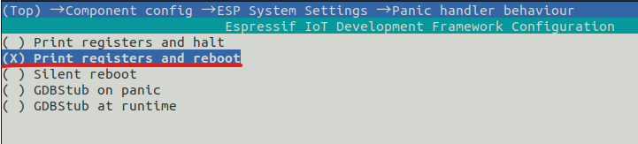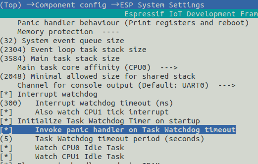 Component config → ESP System Settings →Invoke panic handler on Task Watchdog timeout (*)