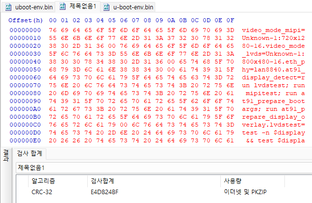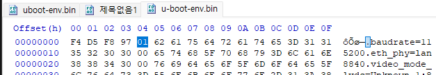 이를 해결하기 위해 mkenvimage 명령어의 -r 옵션을 사용하여 env bin 파일을 생성했습니다. -r 옵션을 추가하여 생성한 bin 파일은 1바이트가 추가되었으며, NAND에 쓰고 부팅하니 정상적으로 동작했습니다.