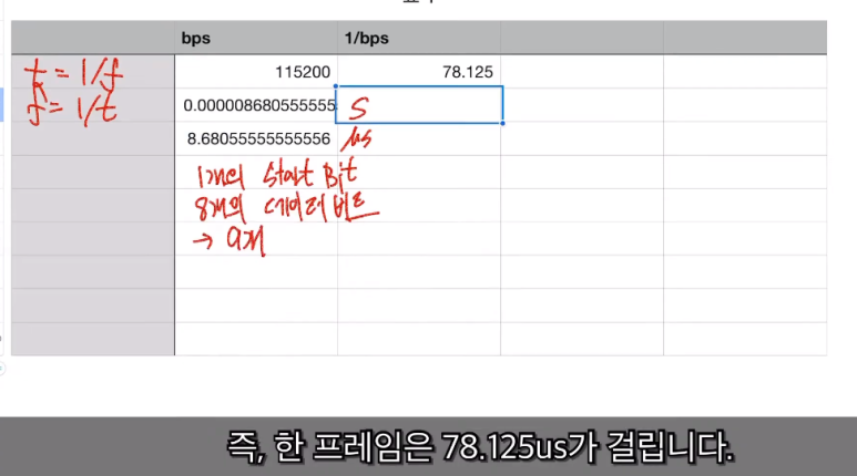 위와 같이 bps를 클럭(주기)로 계산할수있습니다.
