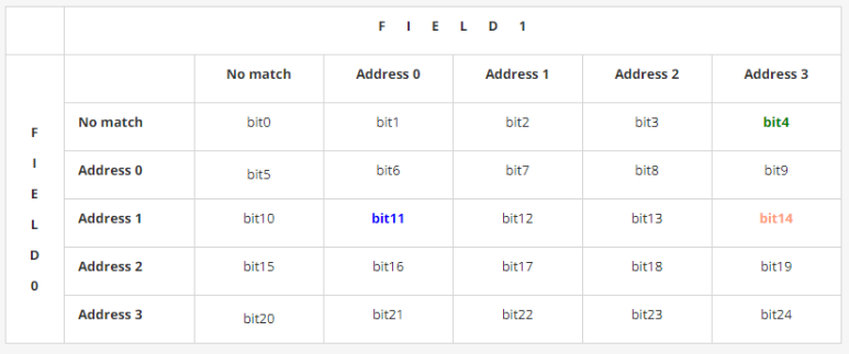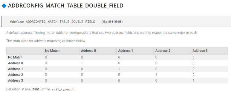 아래 표대를 보면 ADDRCONFIG_MATCH_TABLE_DOUBLE_FIELD가 (0x1041040) 일 때의 표를 보여주고 있습니다.