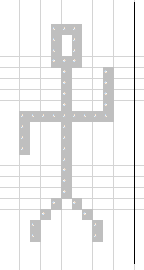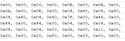 위 캐릭터 도트를 C 배열로 바꾸려면 직접 하나씩 도트를 세어서 C 배열 값을 만들 겁니다.