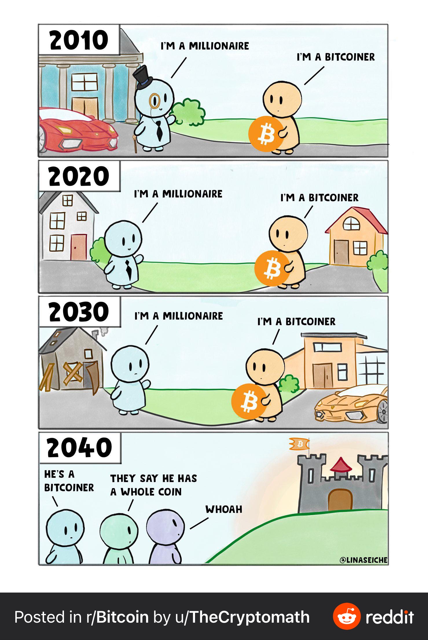 "그는 비트코인이 있데", "많은 코인을 거지고 있데"