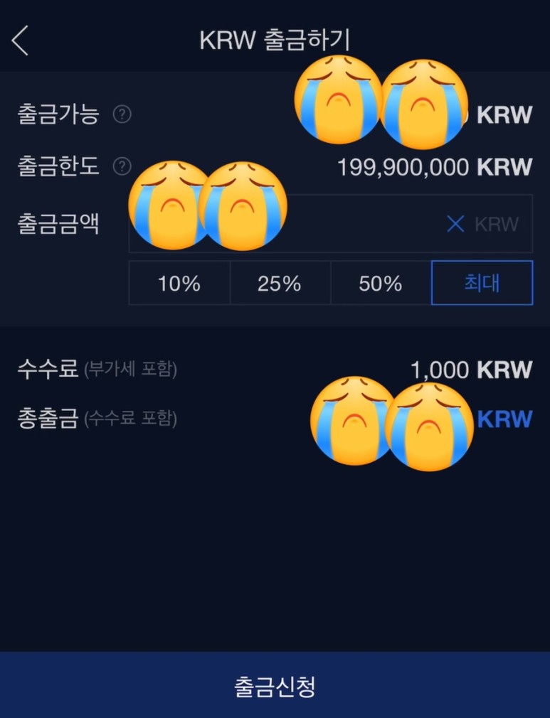 도저히 비트코인에서 재능을 찾을수가 없어서 업비트에 있는 현금을 출금하기로 했습니다