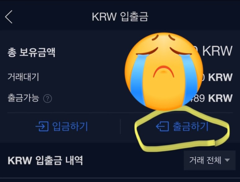 KRW 입출금에서 출금하기를 누릅니다.