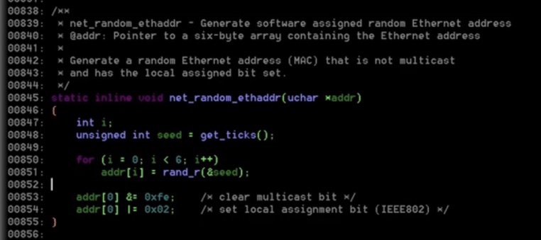 rand()함수는 맥어드레스가 입력되기 전의 제품의 임의의 맥주소를 만들때 사용됩니다.