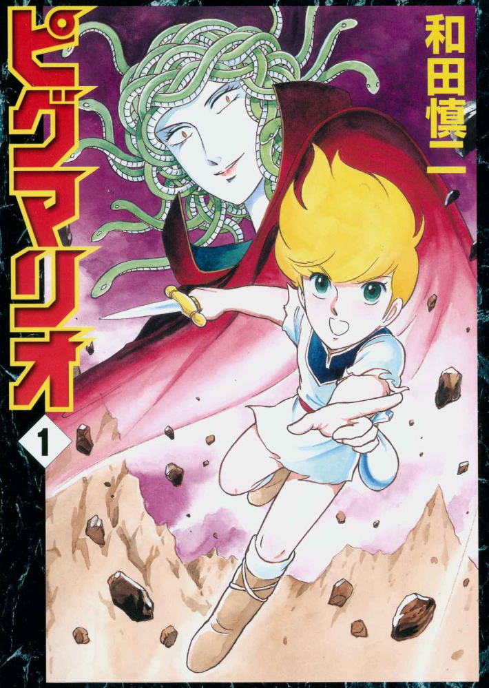 피그마리오는 그리고,로마신화를 기반으로 한 픽션 판타지 만화이다. 왼쪽 사진의 노란 머리의 소년이 주인공 쿠르트이고, 뒤에는 최종 보스로 보이는 메두사이다.