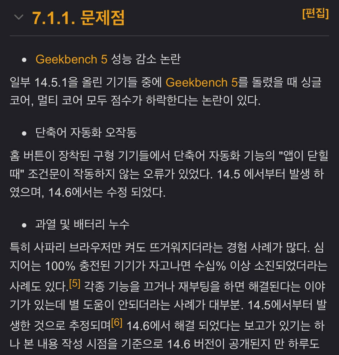 대체 이게 무슨 일이지? 핸드폰고장나는거 아닌가 할 정도 였다가 버전업을 하면 괜찮아진다해서 14.6으로