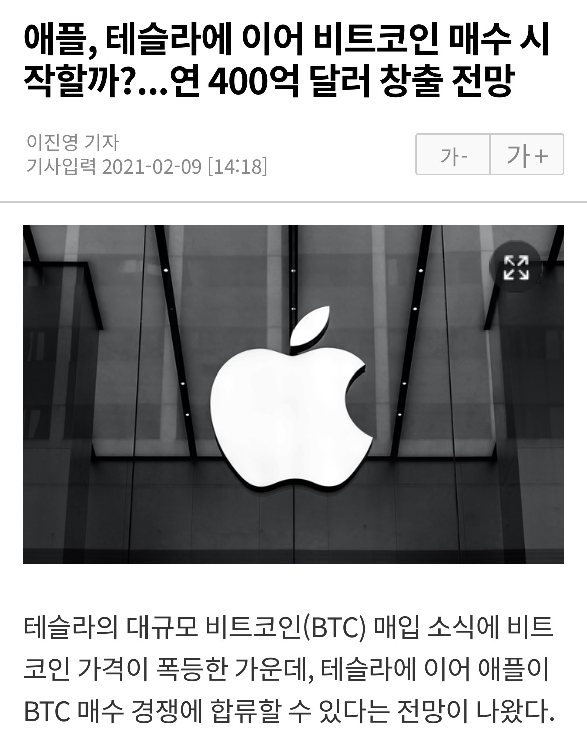 애플도 비트코인 관련해서 합류 한다고 한다.