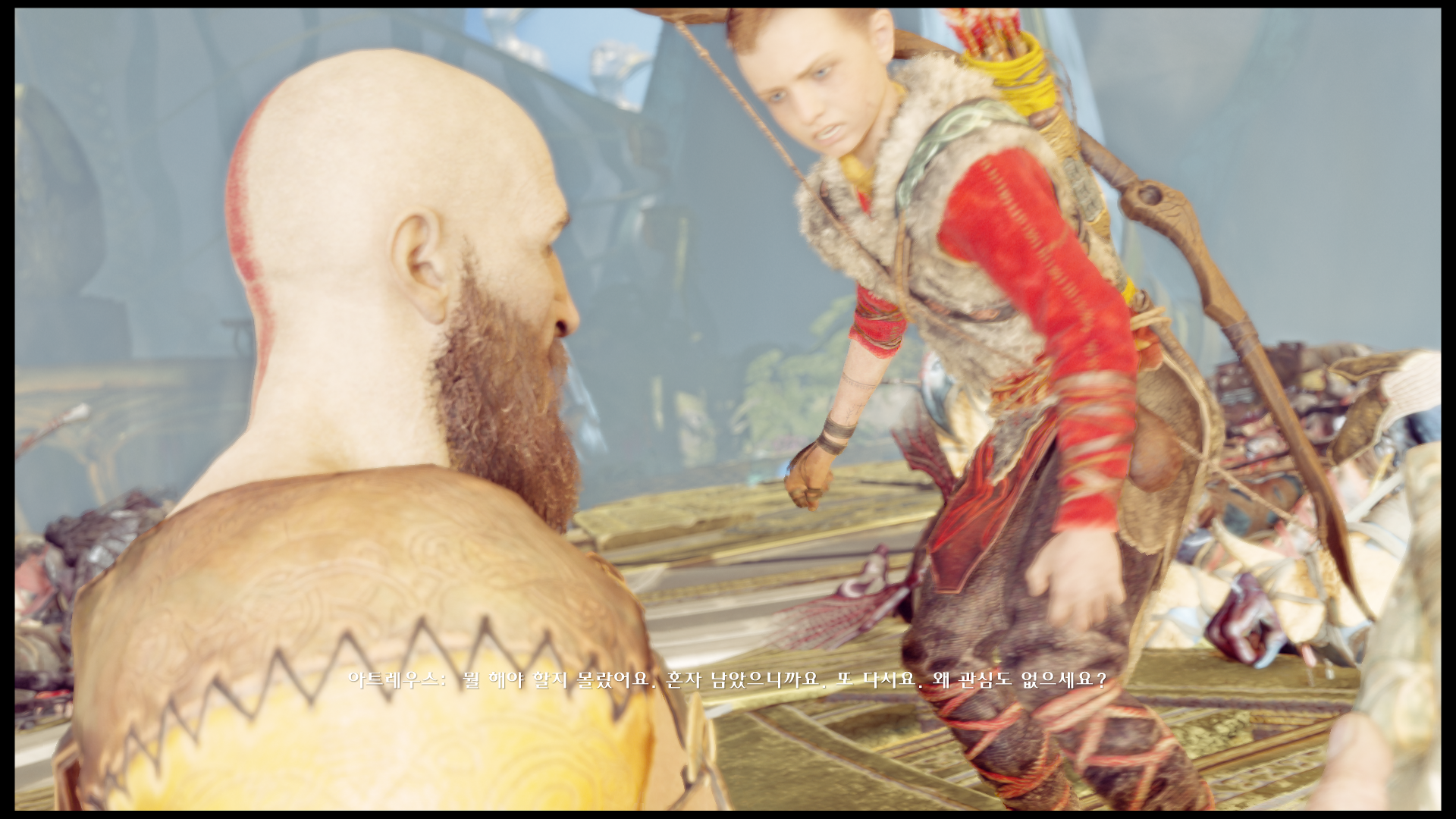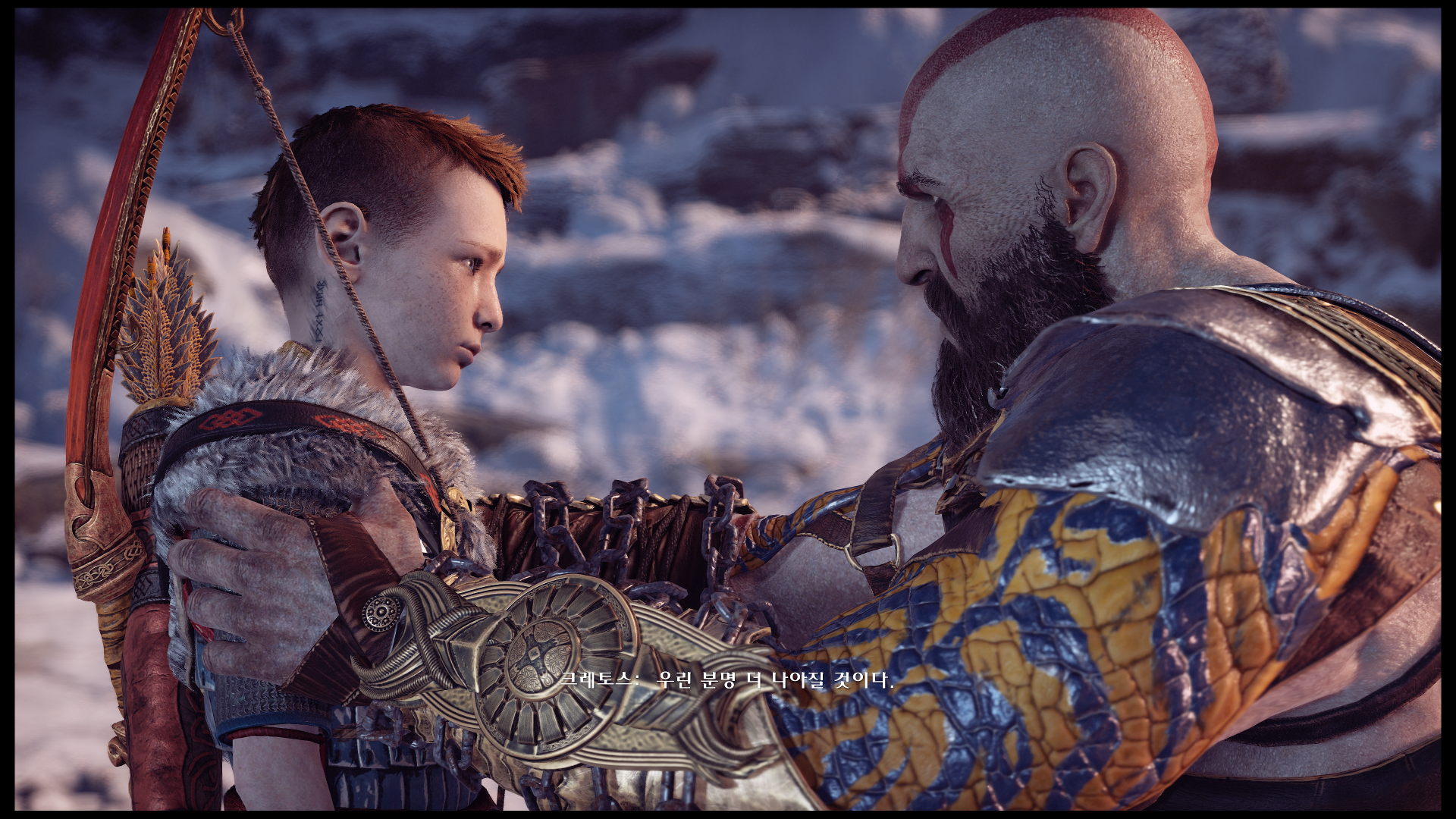 아트레우스에게 자신의 과거를 이야기하는 장면, 아들의 성장을 지켜보면서 인정해주는 모습, 또 실수를 바로 잡아주는 모습은